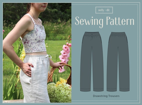 Drawstring Waistband Trousers Digital Pdf Sewing Pattern Etsy